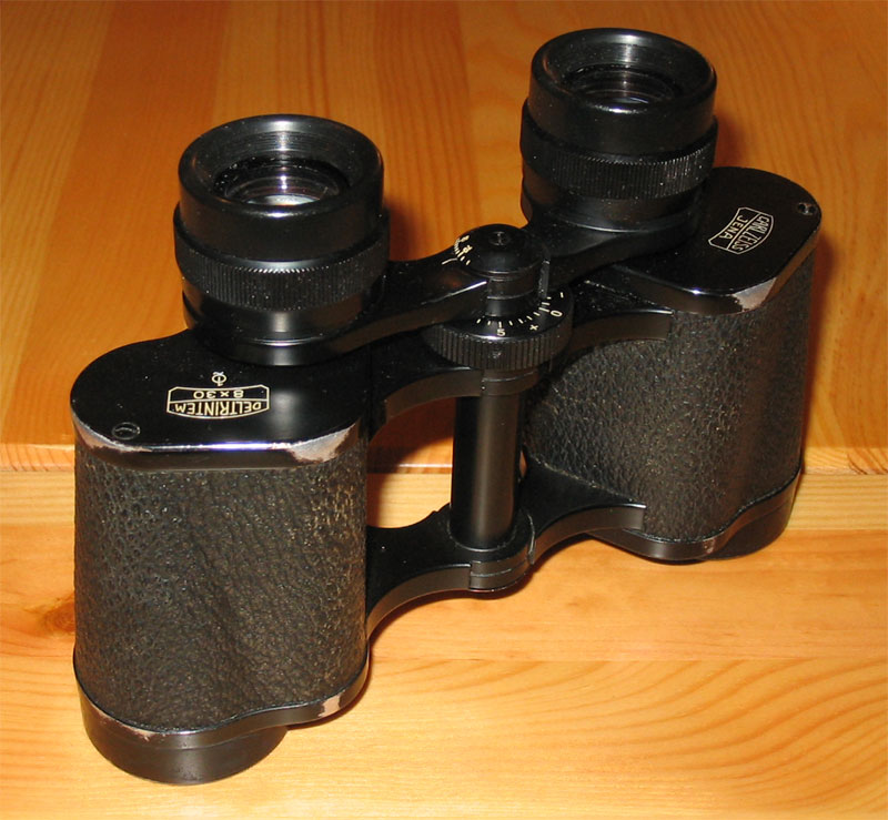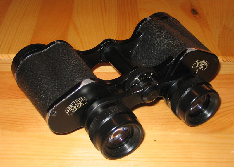 Hersteller: Carl Zeiss Jena Bezeichnung: Deltrintem 8X30 Typ: Porroprismen Glas Verwendung: Wandern, Touristik, Naturbeobachtung Öffnung: 30 mm Vergrösserung: 8x Austrittspupille: 3,75 mm Gesichtsfeld: 8,5° (150 m / 1000 m) Naheinstellung: ca. 2,1 m Seriennummer: 3344206 Baujahr: 1964 Bauzeitraum: ab 1920 Breite: 16,5 cm Höhe: 11 cm Gewicht: 521 Gramm Sonstiges: Knickbrücke, Mitteltrieb mit Skala, Dioptrieneinstellung, Ösen für Trageriemen, schwarzer Kunstleder-Köcher mit einem durch- gehenden Reissverschluss | |||||||||||||||||||||||||||||||||||||||||||||||||||||||||||||||||||||||||||||||||||||||||||||||||