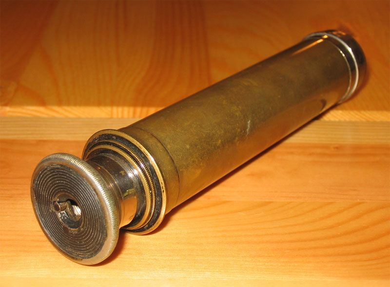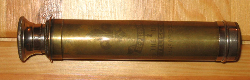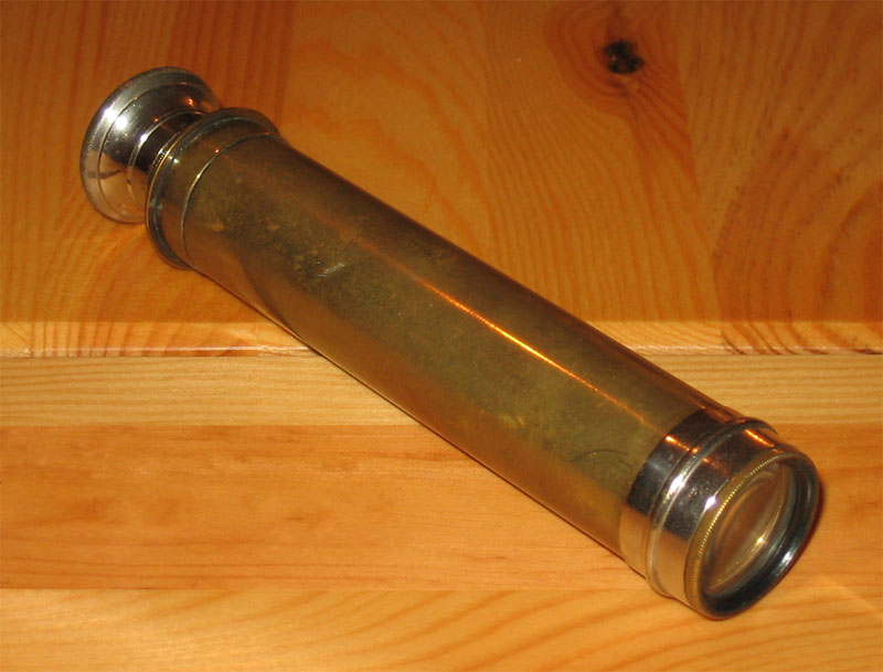 Dieses kleine und handliche Auszugsfernrohr verwendet im Gegensatz zu astronomischen Teleskopen eine dritte Linse, die sog. Umkehr-Linse zwischen Okular und Objektiv, zur Bildaufrichtung. Scharfgestellt wird durch einfaches Verschieben der Tubuselemente. Für meinen Geschmack ist die Vergrösserung (in Relation zum Objektivdurchmesser) viel zu hoch. Das Bild wird dadurch sehr dunkel, was den Einsatz nur bei hellem Tageslicht sinnvoll erscheinen lässt. Auch lässt sich das Fernrohr somit freihändig nicht ruhig und zitterfrei halten. Der Gesichtsfelddurchmesser ist ebenfalls recht bescheiden. Somit wird auch das Aufsuchen des Zielobjekts fast zur Glücksache. Aufdruck und Name lassen auf eine Verwendung in Pfadfinderkreisen im englischen Sprachraum schliessen. Die Buchstaben BP" stehen wahrscheinlich für (Robert) Baden-Powell, dem Gründer der Pfadfinderbewegung. Es ist mir leider noch nicht gelungen, nähere Informationen über das Teliscout, wie. z.B. Hersteller, Baujahr, genaue optische Daten, etc., heraus zu finden. Für entsprechende Hinweise bin ich dankbar. |