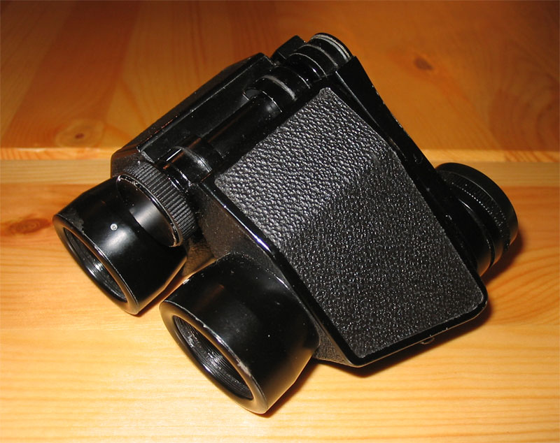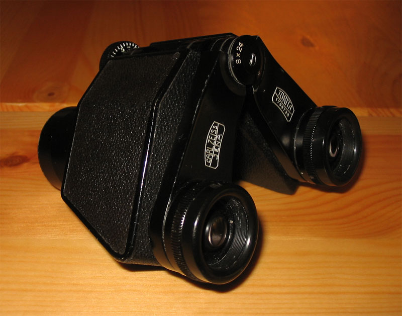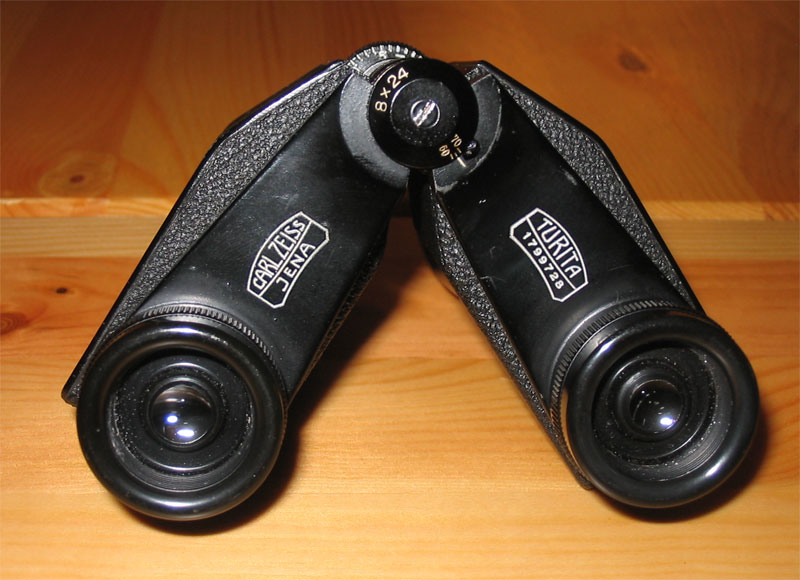 Im Turita werden Prismen nach Möller verwendet, die eine sehr flache Bauform zulassen. Die Objektive stehen etwas enger beieinander als die Okulare. Zum Transport wird das Glas flachgelegt" und in dem passgenauen Köcher aufbewahrt. Will man es benutzen, müssen die Prismengehäuse stark geknickt werden, um den passenden Augenabstand zu erzielen. Das Glas erhält dadurch ein fast dreieckiges, sehr ungewöhnliches Aussehen. |