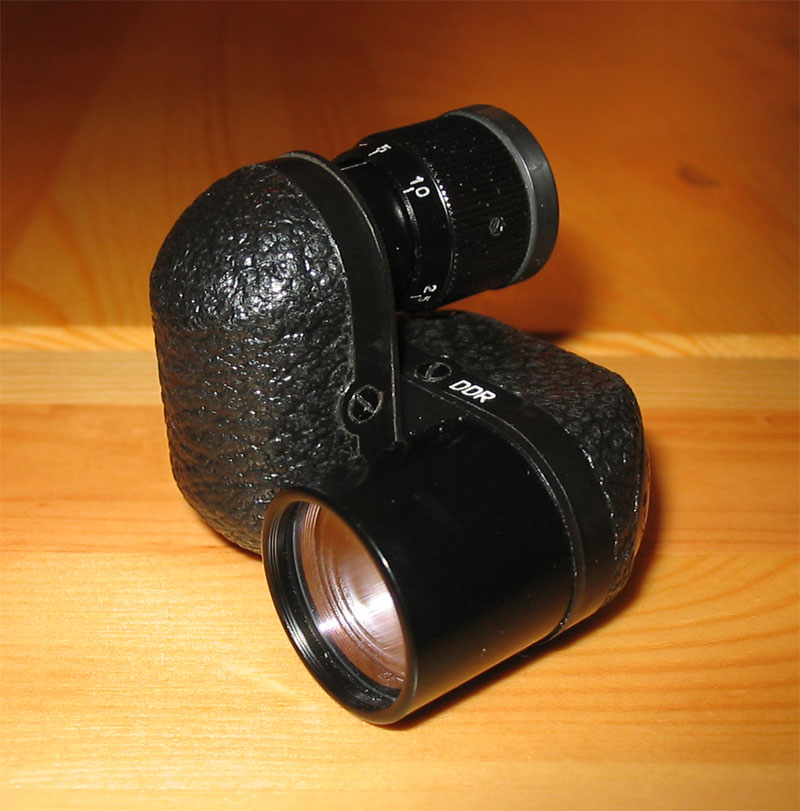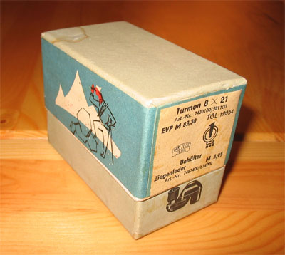 Beim Turmon handelt es sich um ein interessantes Monokular, dass sich klein und flach zusammenlegen lässt. Aufgrund der geringen Grösse und des bescheidenen Gewichts lässt es sich problemlos überallhin mitführen und wird somit zum häufig genutzten Universalglas. Im flachen Transportzustand steht das Bild auf dem Kopf. Erst nach dem Knicken der Prismengehäuse in die Gebrauchsform richtet es sich auf - die Prismen stehen nun im richtigen Winkel zueinander. Ich habe irgendwo gelesen, dass dieses Glas zu DDR-Zeiten gerne von der Stasi verwendet wurde. Ich bin mir zwar nicht sicher, ob das stimmt, aber das Turmon lässt sich unauffällig in der Faust verstecken und auch benutzen. Für meinen persönlichen Geschmack ist die Masse allerdings zu gering. Das Bild zittert dadurch und aufgrund der doch recht starken 8-fachen Vergrösserung recht leicht. Ein schwereres, beidhändig gehaltenes Fernglas ist wesentlich ruhiger zu handhaben. Leider ist keine Seriennummer eingraviert und die Datierung des Herstellungsjahres somit nicht möglich. Die Vergütung des Objektivs schimmert allerdings ähnlich meinem Binoctem, was auf die neuere Mehrschichtvergütung schliessen lässt. Diese wurde ab ca. 1978 eingesetzt. | |||||||||||||||||||||||||||||||||||||||||||||||||||||||||||||||||||||||||||||||||||||||||||||||||